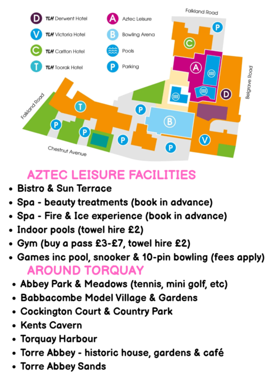 Our hotel boasts a wealth of facilities including a spa, swimming pools, a gym and a bunch of other options. Torquay Golf Club is under 10 minutes by car and there's mini golf less than 10 minutes